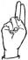 На ћирилици написано НИКОДИЈЕ РАДОВАНОВИЋ састоји се из 19 слова [?]. Исписано ћириличном једноручном азбуком за глувонеме: